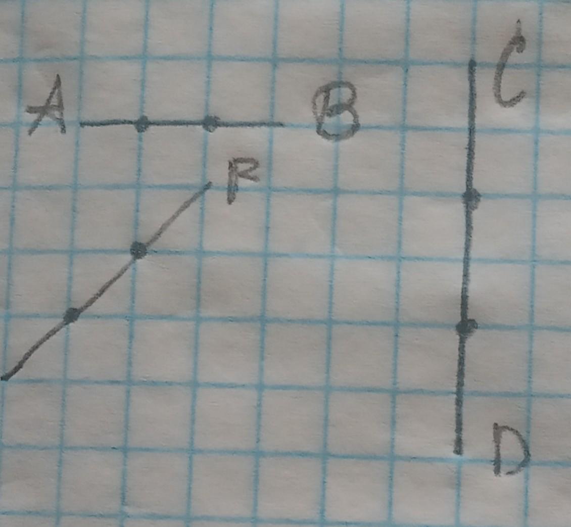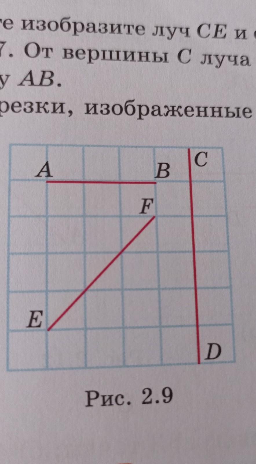 2.9. На клетчатой бумаге изобразите отрезки, как показано на рисунке 2.9. Укажите точки, делящие отрезки AB, CD, EF на три равные части.