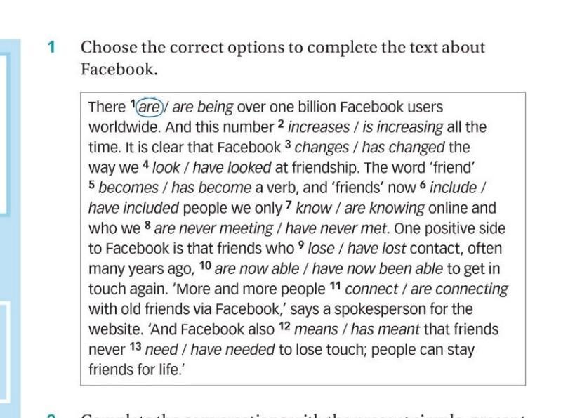 2) is increasing 3) has changed 4) look 5) has become 6) include 7) know 8) have never met 9) lose 10) are now able 11) connect 12) means 13) need