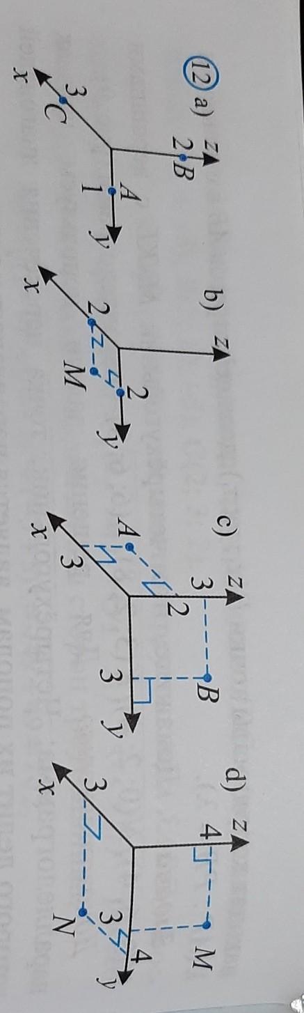 B(0; 0; 2) c) A(3; 0; 2) N(3; 4; 0)