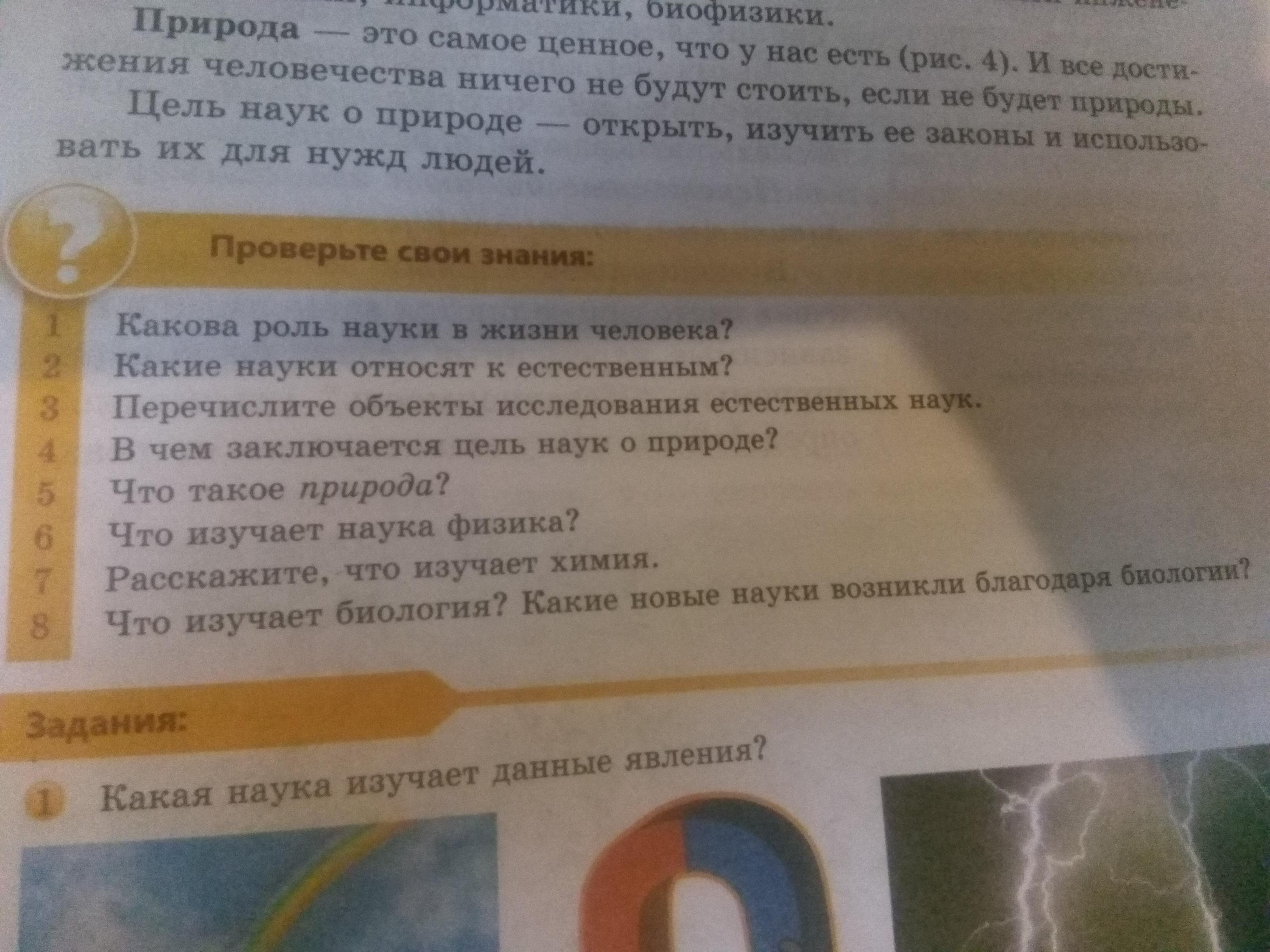 Проверь себя 5. что изучает наука физика 6.стучать наука физика 7. Расскажите что изучает химия 8.что изучает биология какие новые науки возникли благодаря биология