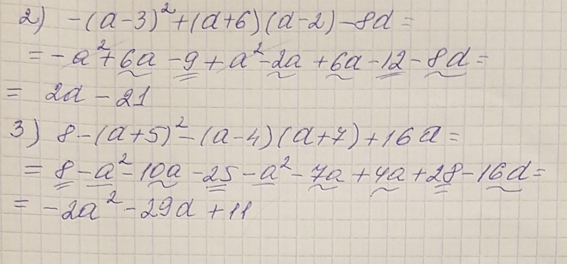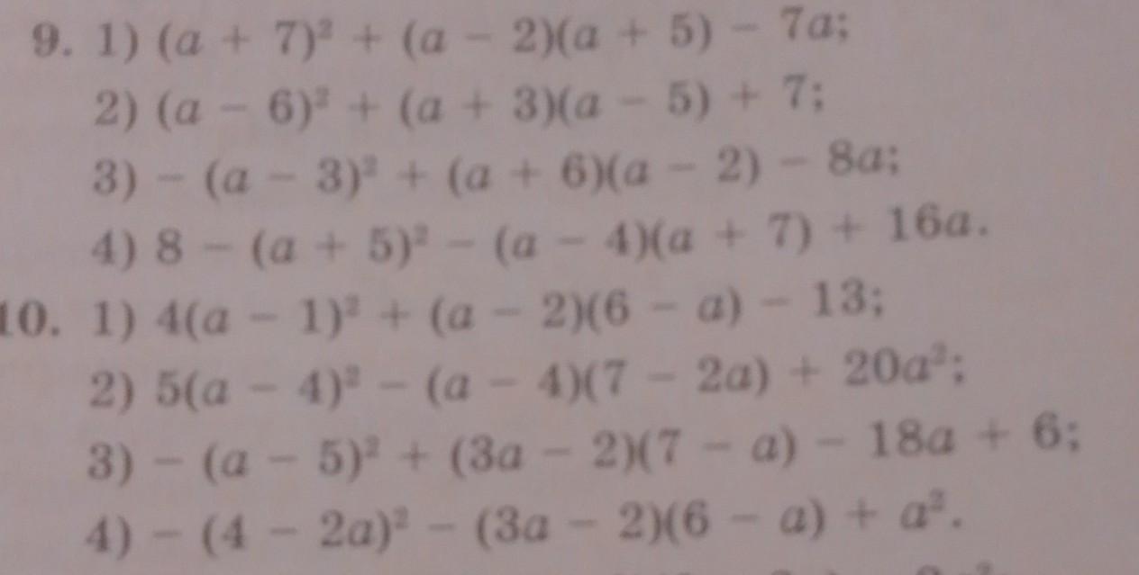 10) 3. -(а-5)²+(3а-2)(7-а)-18а+6 = -a²+10a-25+21a-3a²-14+2a-18a+6= -4a²+15a-33.