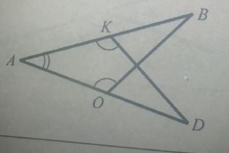 Так как нам дано,что AK=AO и между ними есть общий угол А,то треугольники равны по первому признаку равенства треугольников(по сторонам и углу между ними)
