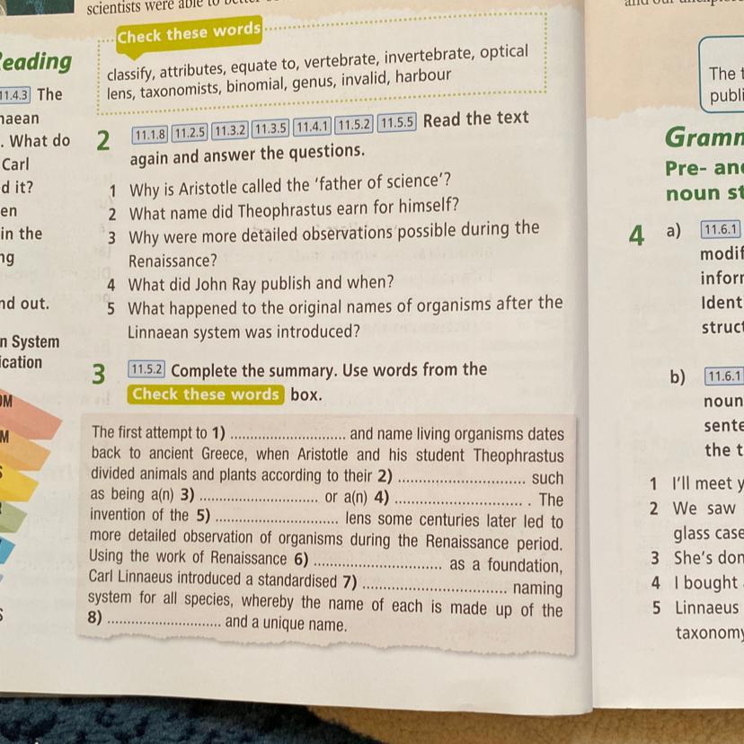 Carl Linnaeus introduced a standardised 7) ............ ..... naming