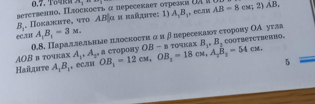 так как параллельные плоскости пересекают угол в заданных точках, то линии пересечения А1В1 и А2В2 параллельны, а значит все точкиО, А1,В1,А2,В2 , лежат в одной плоскости . Тогда ΔОА1В1 и ΔОА2В2 подобны,то есть