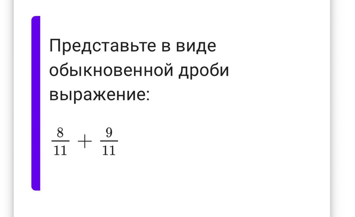 знаминатели одинаковые их оставляешь и складываешь числители то есть 8+9 и будет 17