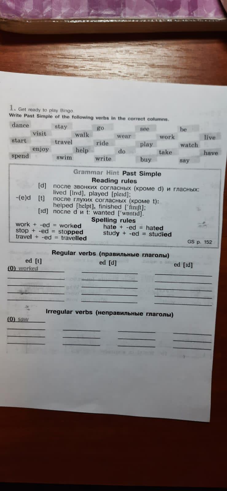 ed [d]: stayed, walked, lived, travelled, played, enjoyed