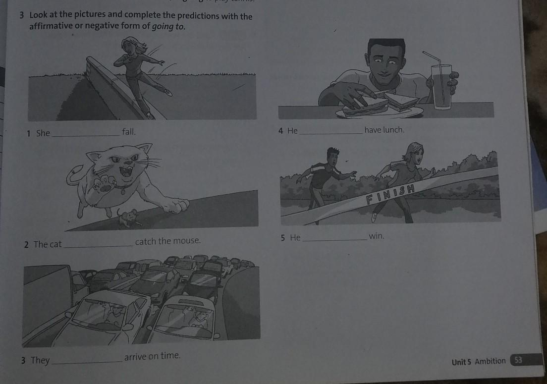 Look at the picture and complete the text. Use the affirmative or negative form of the verbs.