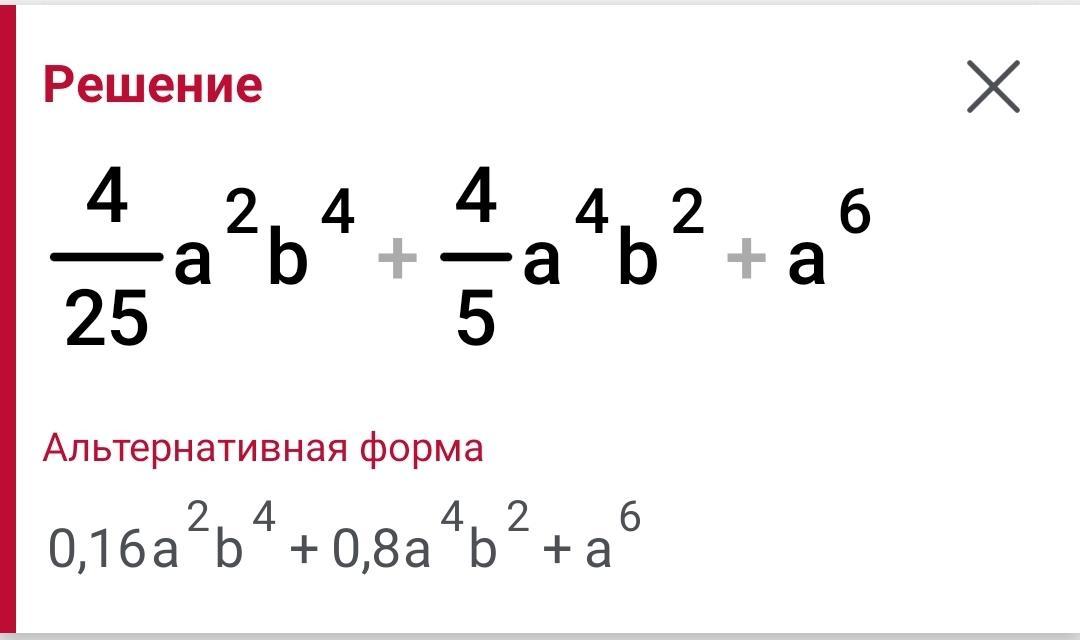 2) 0,16а^2b^4+0,8a^4b^2+a^6