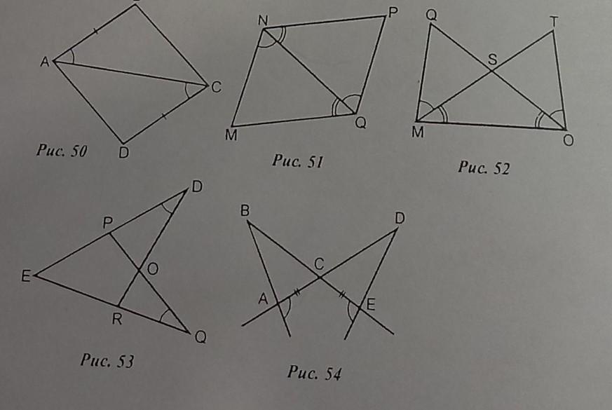 54) ΔABC=ΔEDC по стороне и двум прилежащим углам: