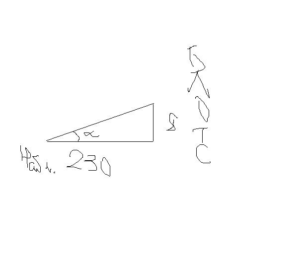 Под каким углом видно телеграфный столб высотой 8 м,который находится на расстоянии 230м от наблюдателя.