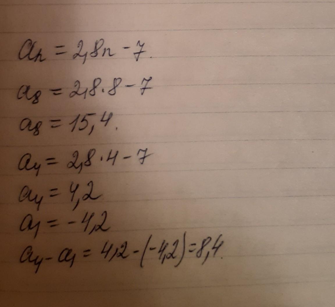 24. Арифметичну прогресію (а) задано формулою п-го члена; аn=2,8n - 7.