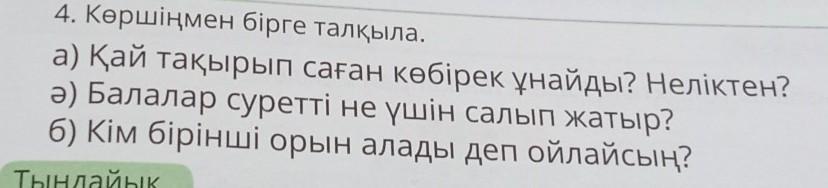 а)саған қай тақырып ұнады неліктен? Екенін түсіндір. Мысалға бұл жерде адамды уәдеге тарту жайлы дейсің немесе т.б.
