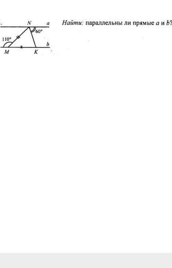 Прямые параллельные, если накрест лежащие углы равны. Мы нашли такие углы: NKM=55° и N=60°