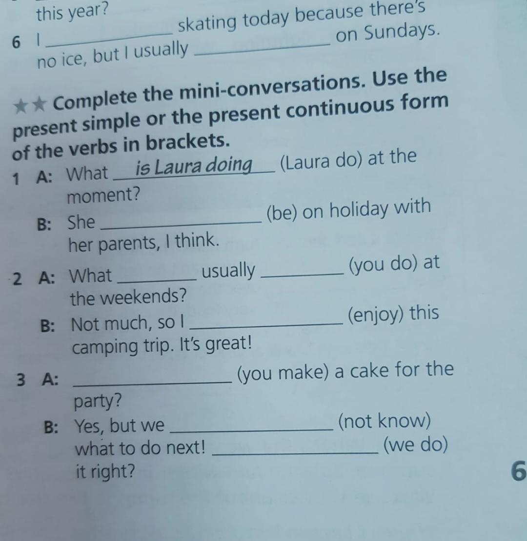 complete the mini conversations. Use the present simpl or the present continues from of the verbs in brackets