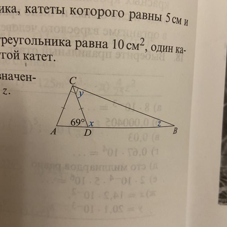 Теперь рассмотрим треугольник АВС-он прямоугольный.Угол А+угол В=90°,тогда угол B=90°-угол А=90°-69°=21°,а угол В-это и есть угол z.