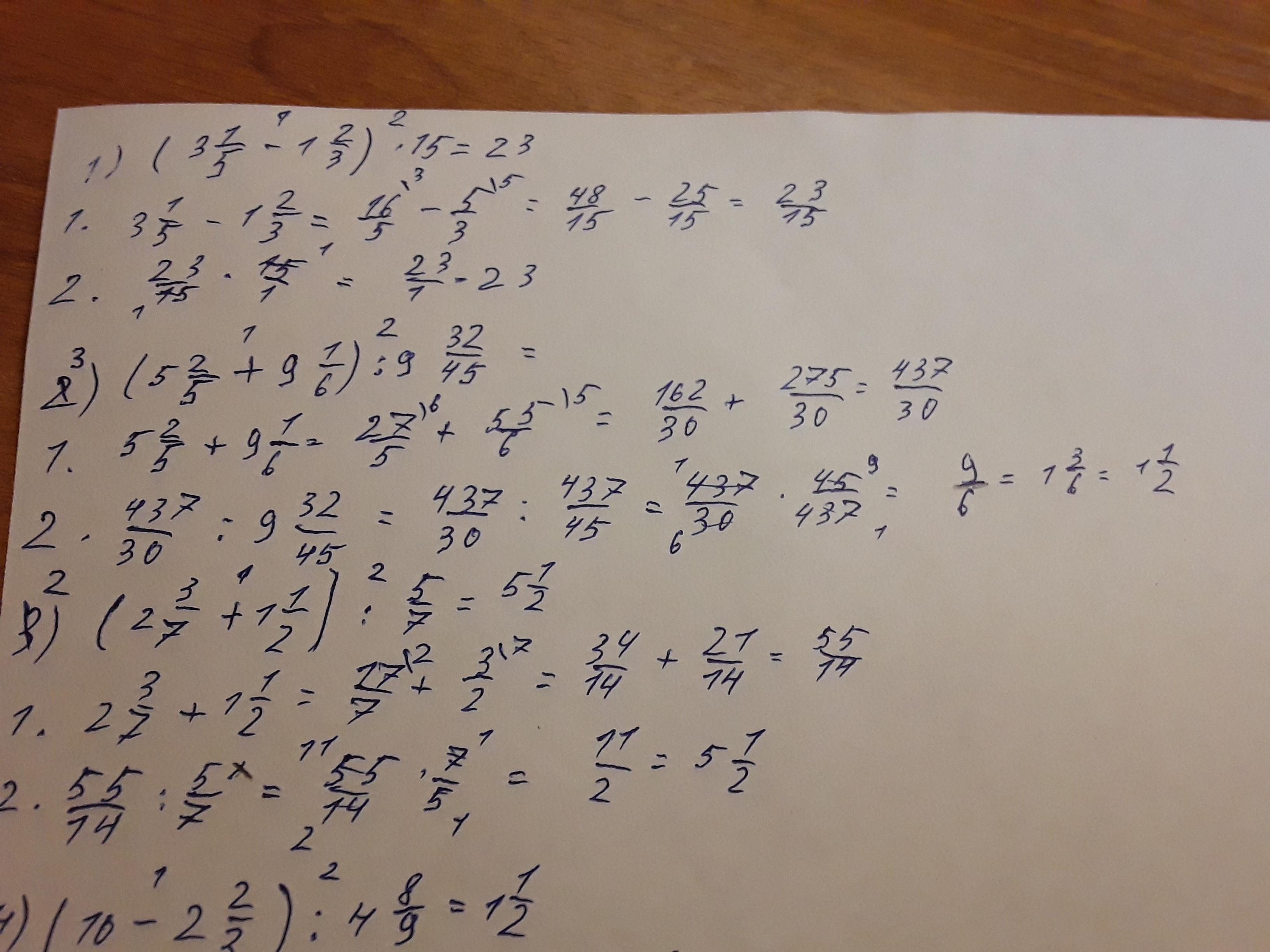 2) (2 3/7 + 1 1/2) : 5/7=> НОК(7;2)=14=> (2 6/14+1 7/14) : 5/7=3 13/14:5/7=