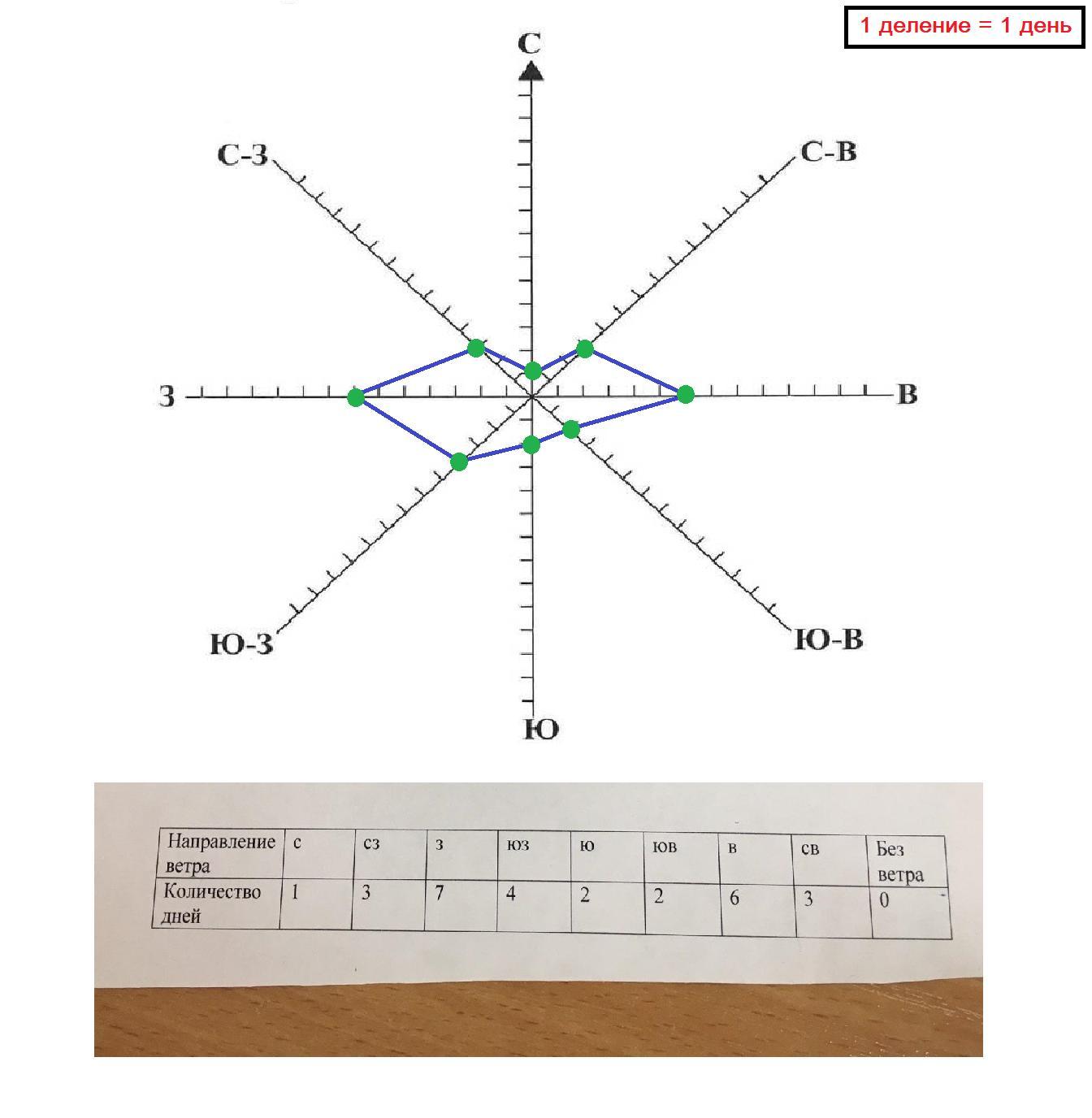 Роза ветров - это график направления ветра за месяц (сезон, год).