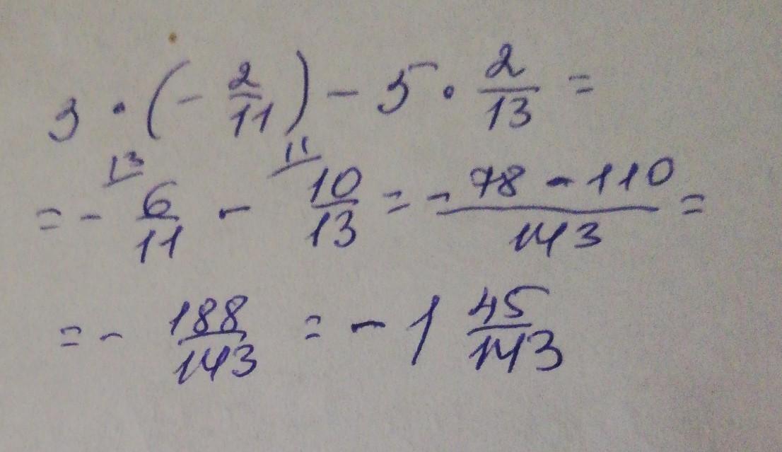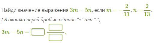 Найди значение выражения 3m−5n, если m=−2/11, n=2/13.