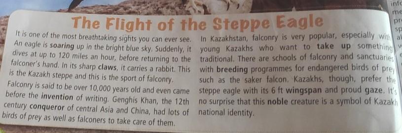 1 What is the writer doing in the first paragraph? A suggesting a tourist attraction B introducing a traditional sport C describing the Kazakh steppe