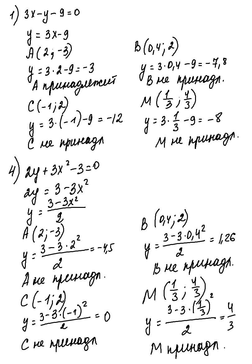 Какие из точек А(2;-3);В(0,4;2);С(-1;2);М(1/3;4/3) принадлежат графику уравнения:
