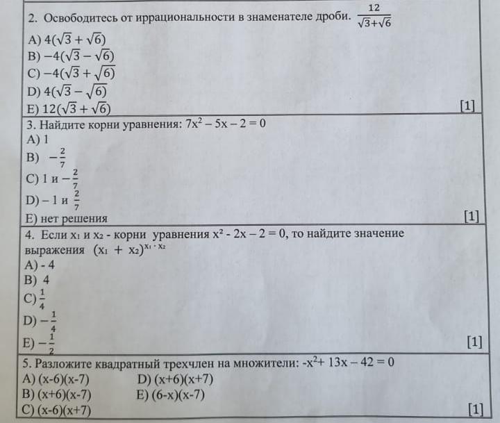 2)12/√3+√6=12/√3+√6 × √3-√6/√3-√6= 12(√3-√6)/(√3+√6)(√3+√6)=12(√3-√6)/3-6=12(√3-√6)/-3=-4(√3-√6)