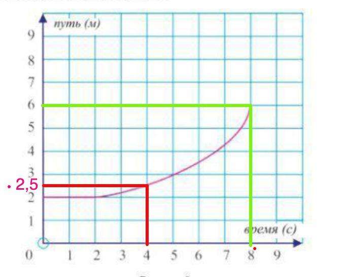 1) Найдем по графику расстояние за первые 4 сек: