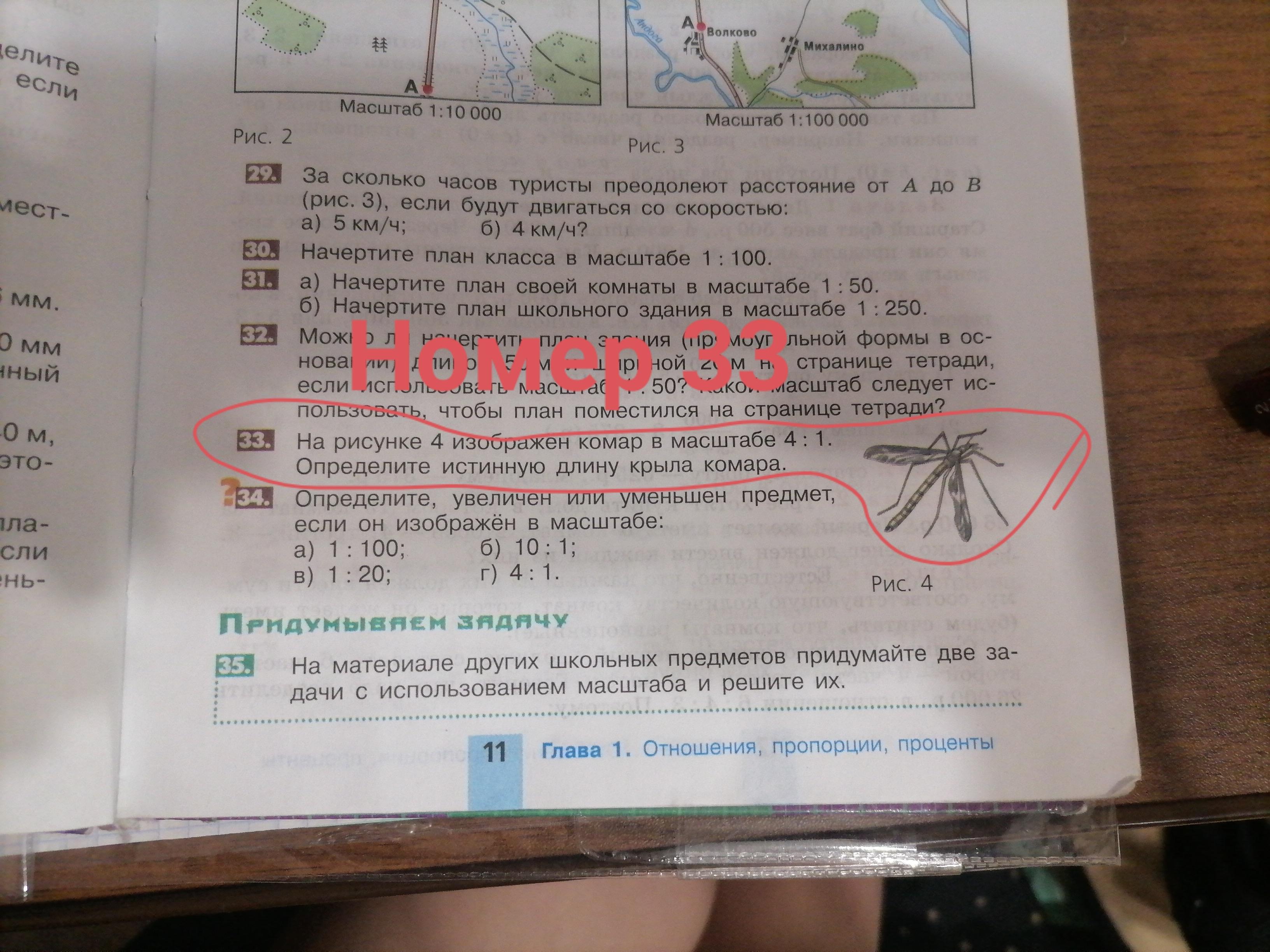 надо измерить линейкой длину крыла комара на рисунке и разделить на 4