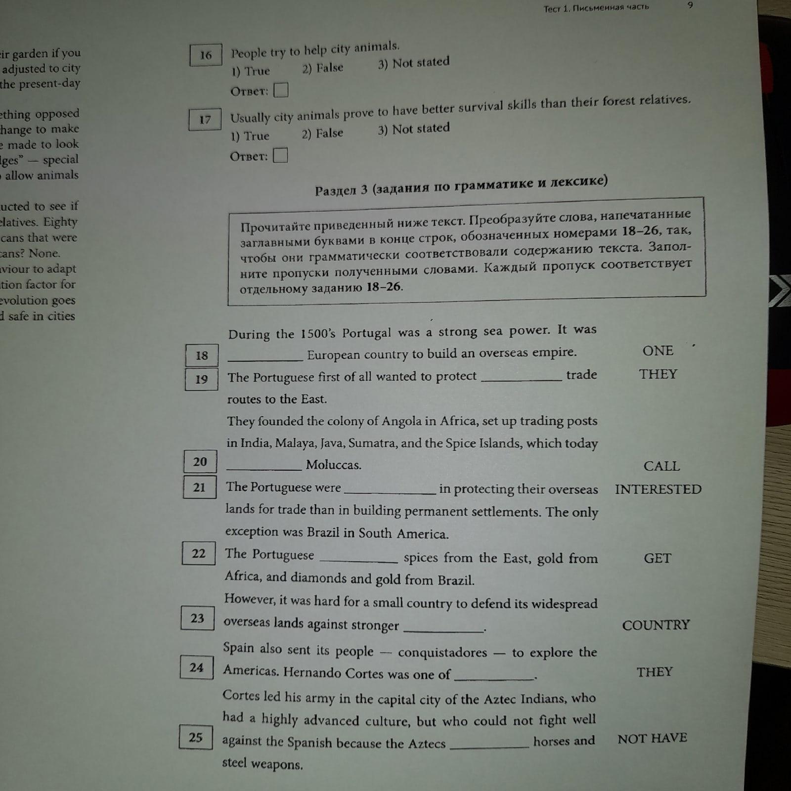 Раздел 3. (Задание по грамматике и лексике)