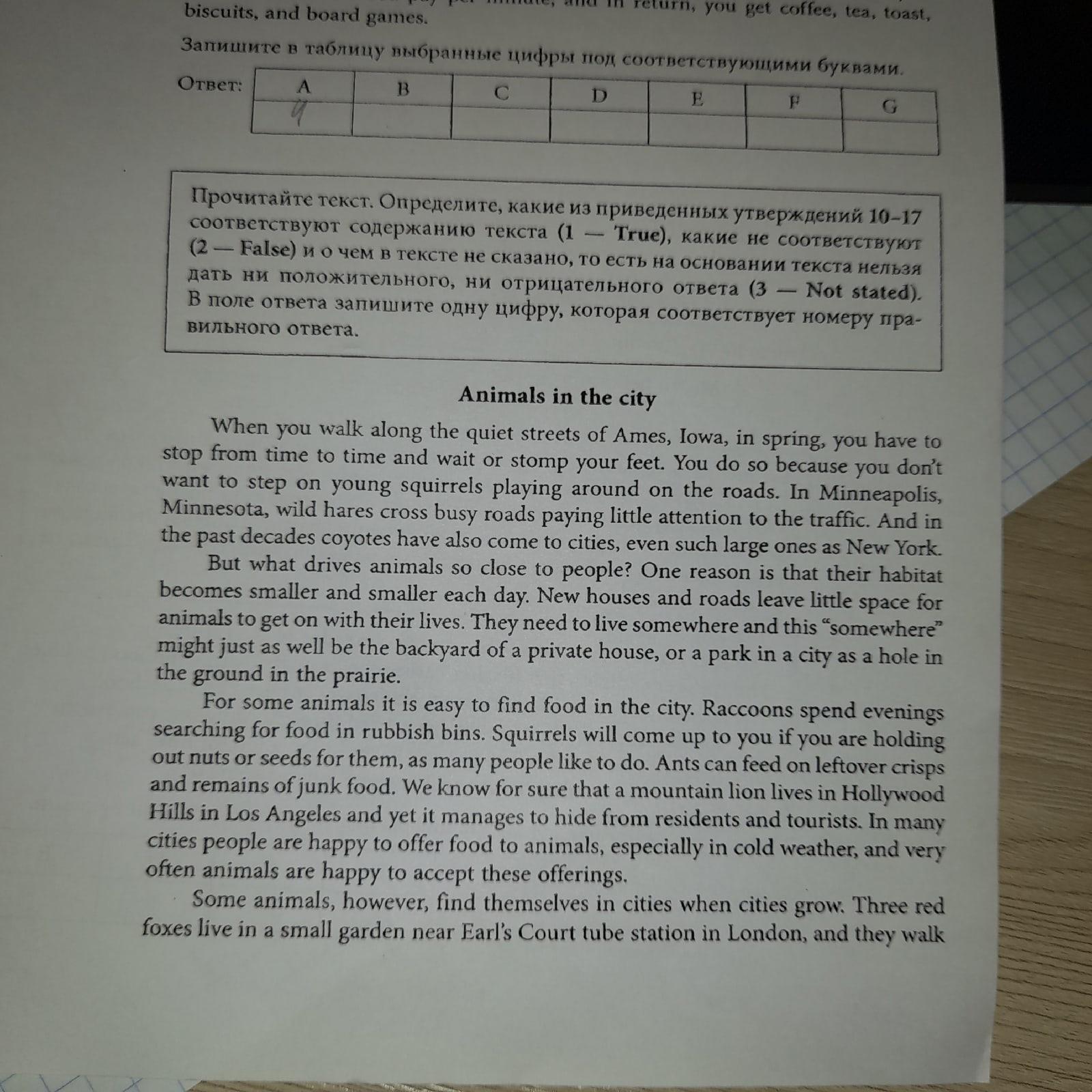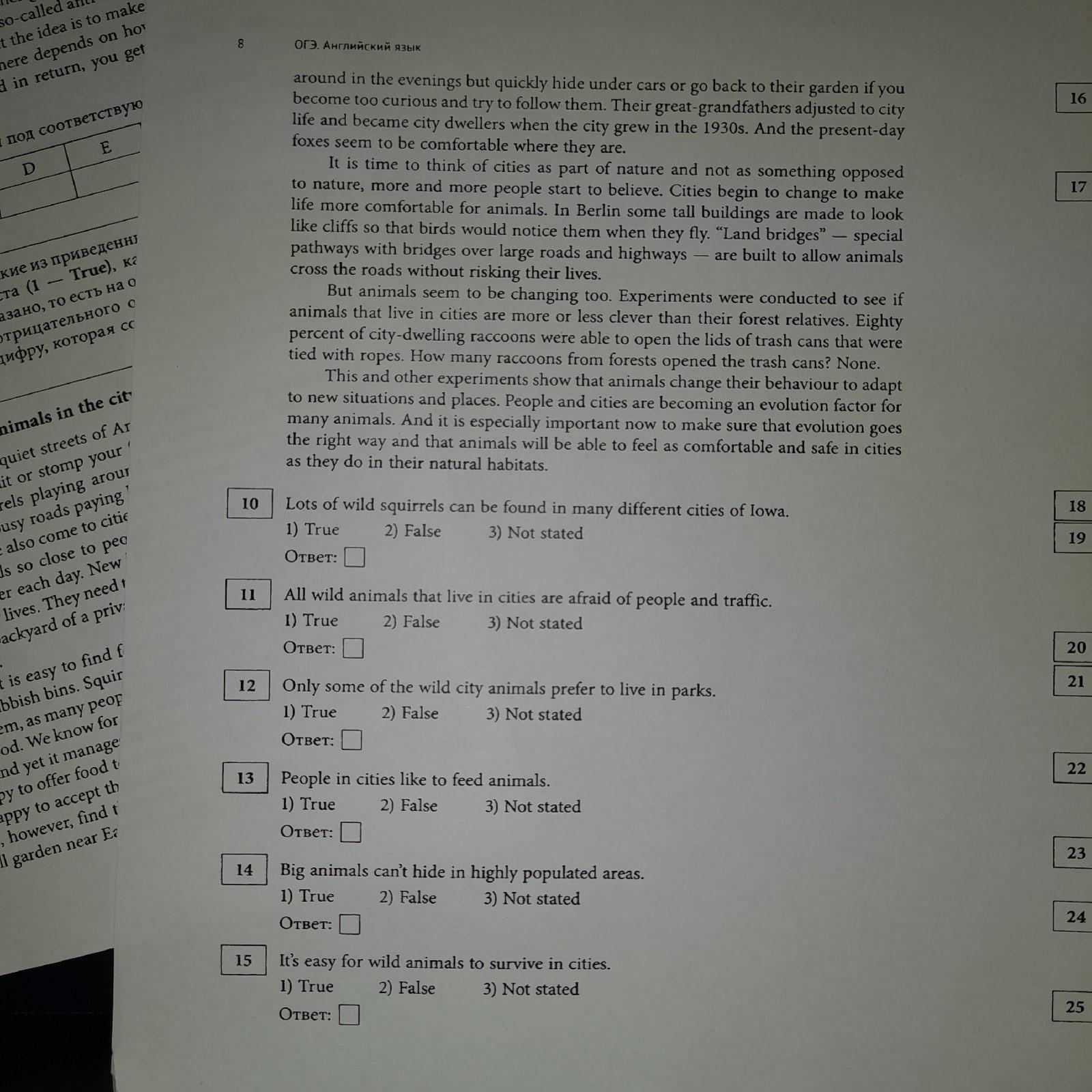 Ответы на текст на последнй странице