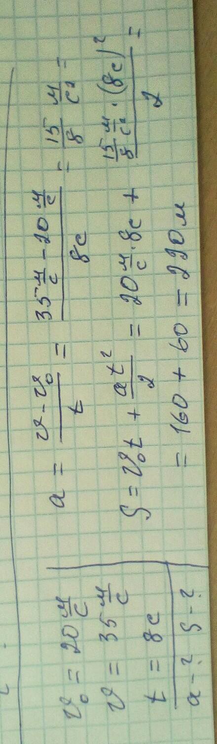 s=(v+vo)*t/2=(35+20)*8/2=220 м
