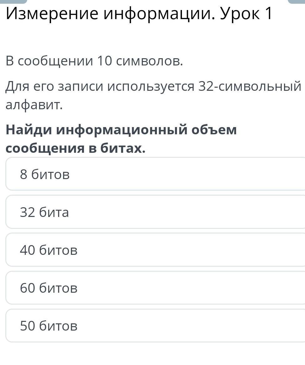 N = 2^i <=> 2^5 = 2^i <=> i = 5 (бит)