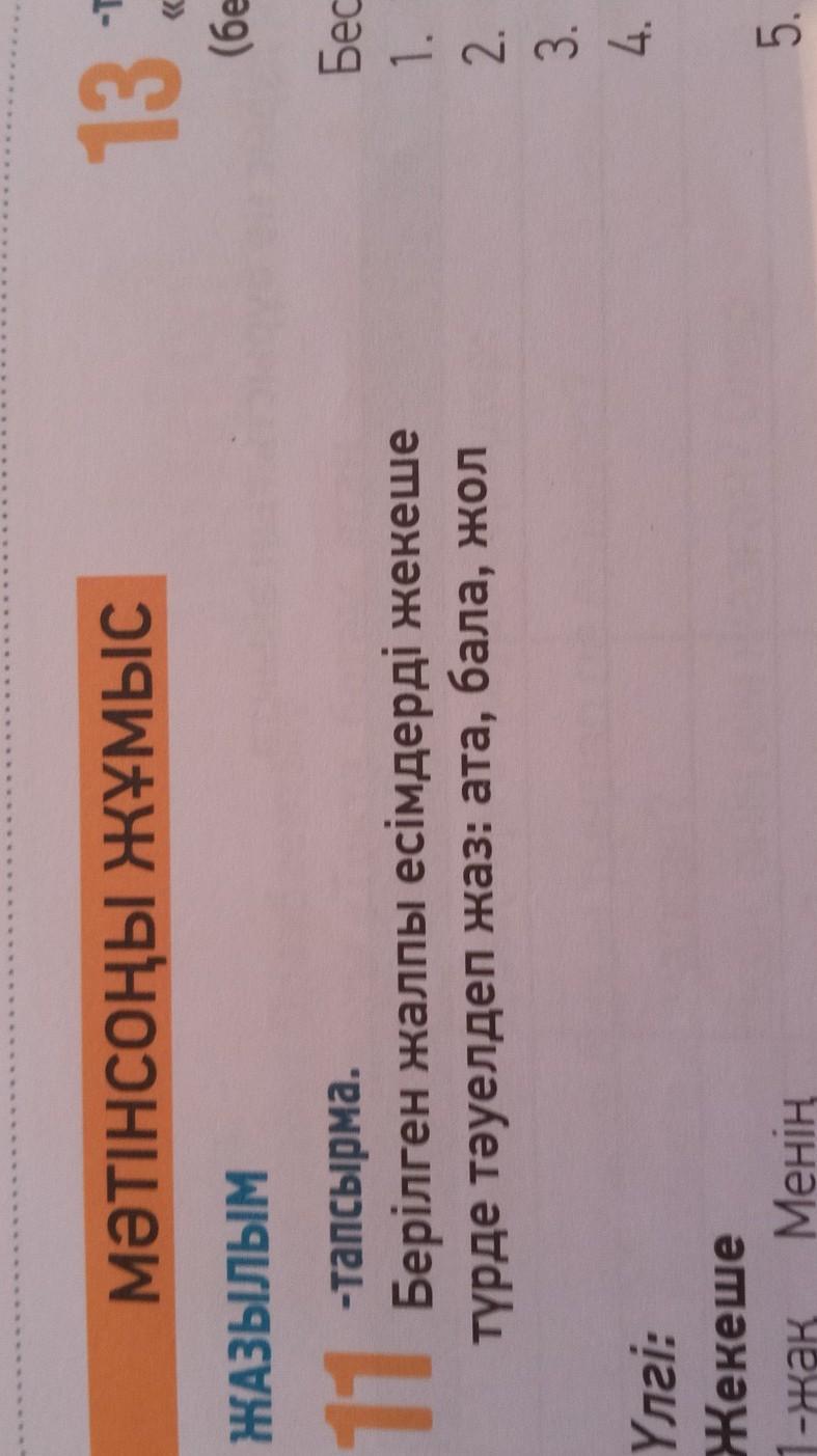 МӘТІНСОҢЫ ЖҰМЫС ЖАЗЫЛЫМ 11 -тапсырма. Берілген жалпы есімдерді жекеше түрде тәуелдеп жаз: ата, бала, жол во множесственом числе