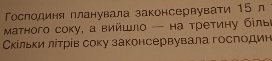 а 76. Господиня планувала законсервувати 15 лто- матного соку, а вийшло на третину більше. Скільки літрів Соку законсервувала господиня? ДОРОЖІТЬ СРОЧНО З МЕНЕ 45б.