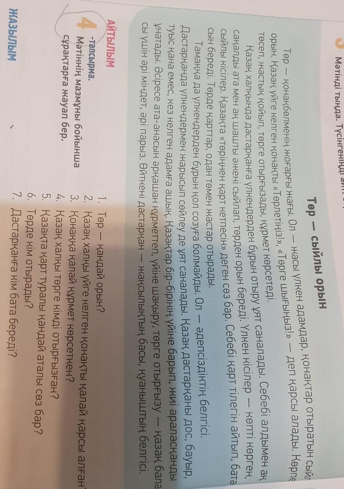 2.Төрлетіңіз,төрге шығыңыз деп қарсы алған.