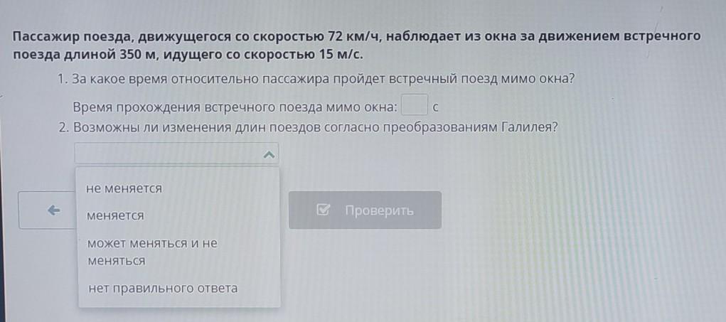 1) За какое время относительно пассажира пройдет встречный поезд мимо окна?