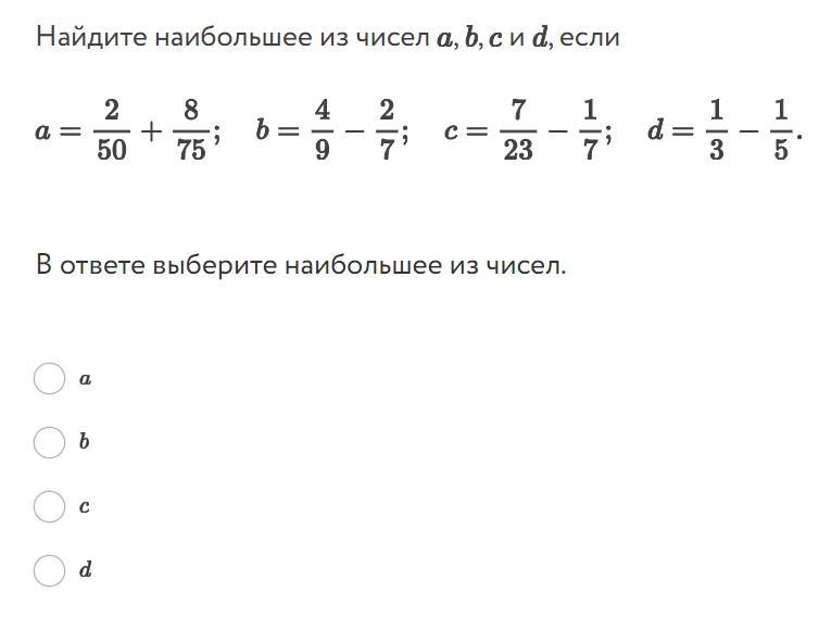 А. 11/75 б,. 10/63 c. 26/161 d. 2/15 это точно гарантирую