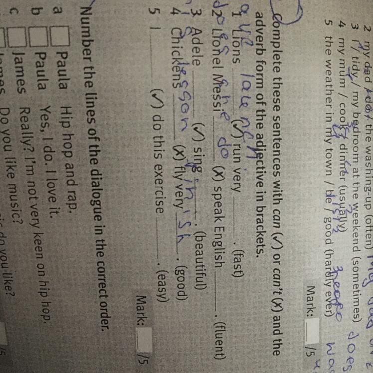 Complete these sentences with can or can’t and the adverb form of the adiective in brackets