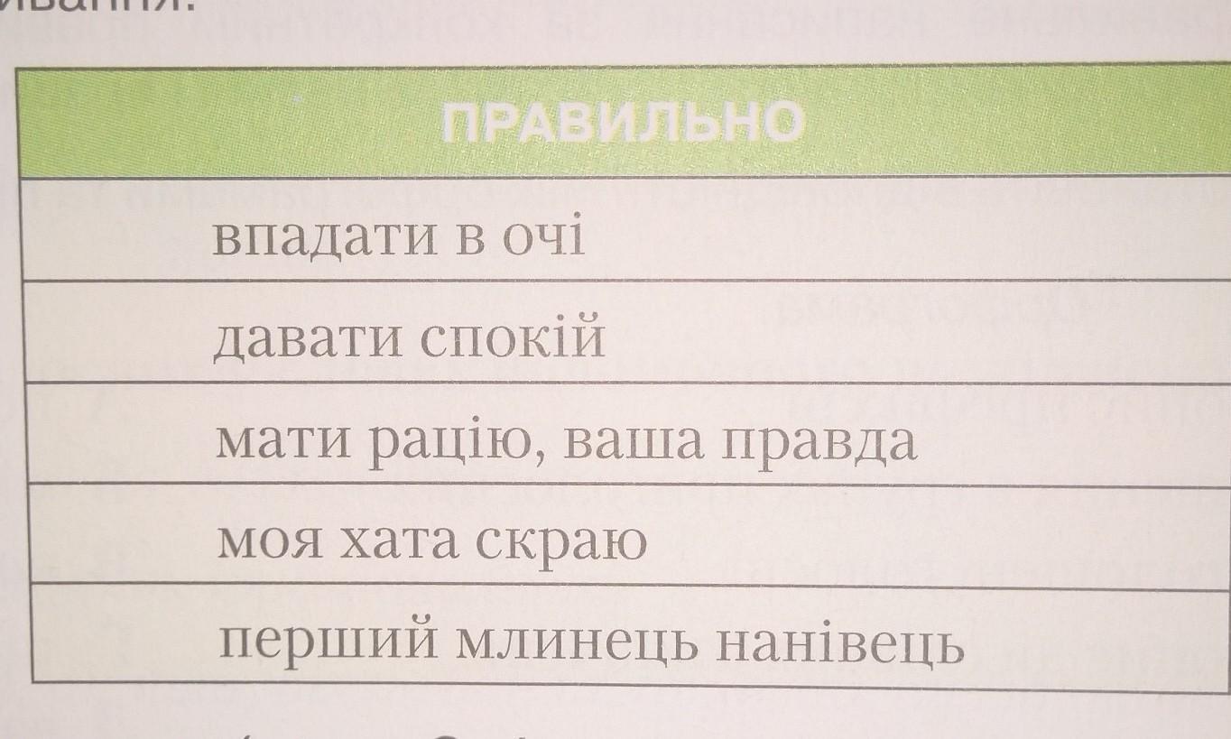 Впадати в очі кожній людині. Давати спокій близькій людині. Під час розмови я мав рацію. Що б не було моя хата скраю. Що б я не робила, але перший млинець нанівець.