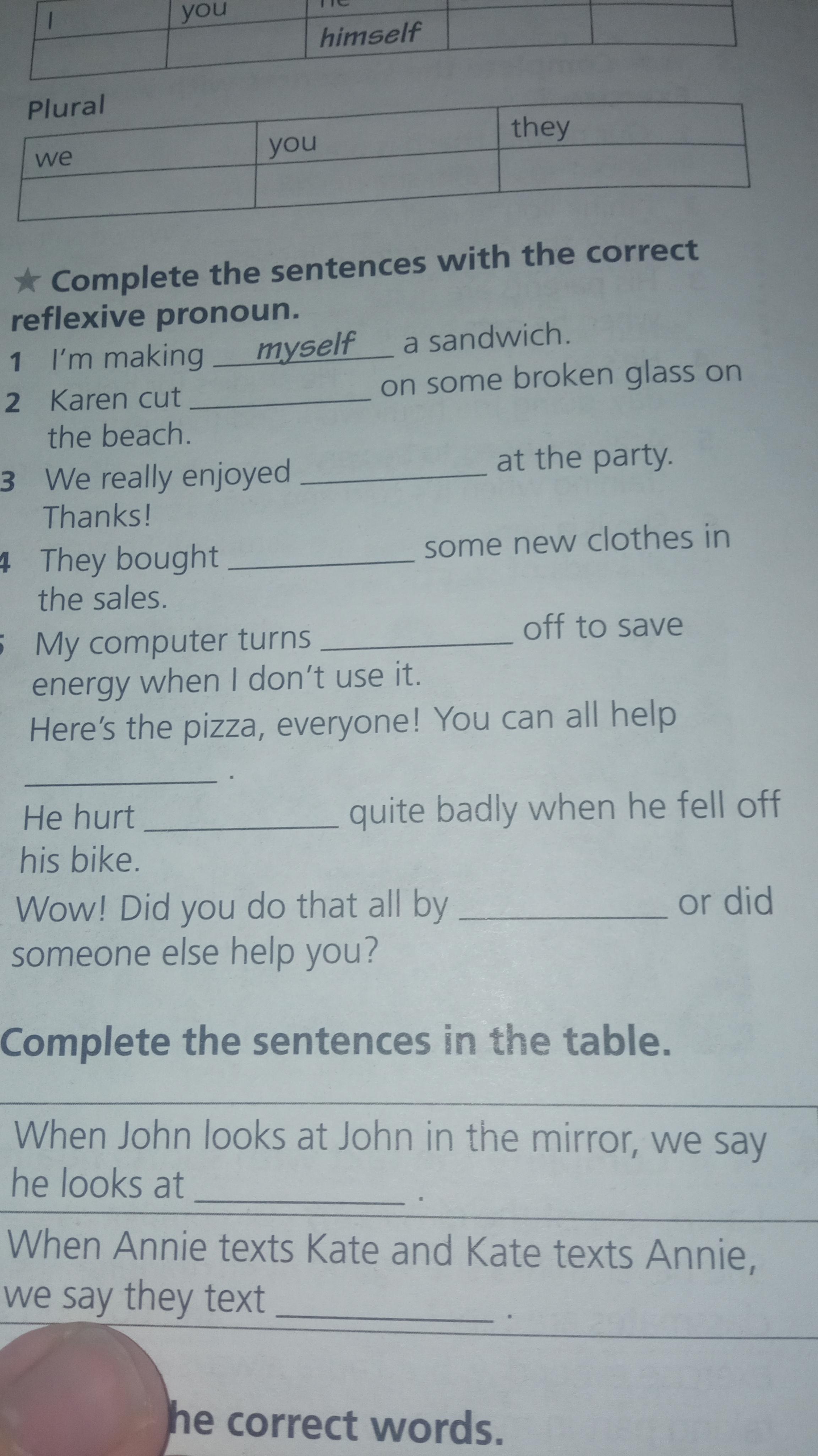 Помогите пожалуйста 50 баллов. Complete the sentences with the correct reflexive pronoun.