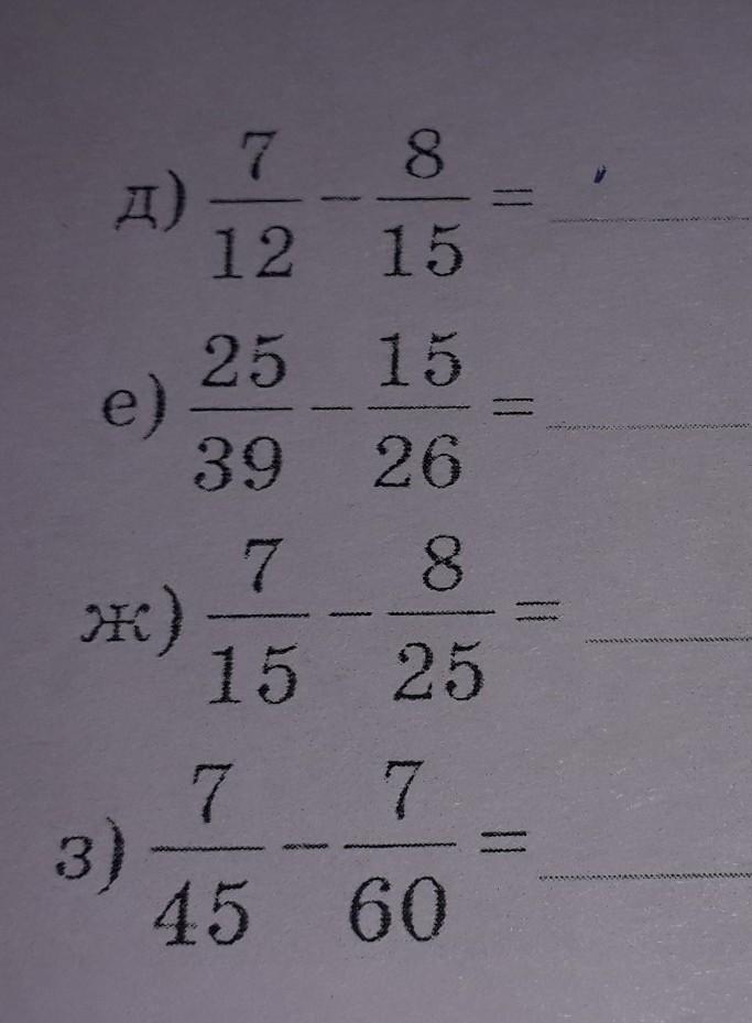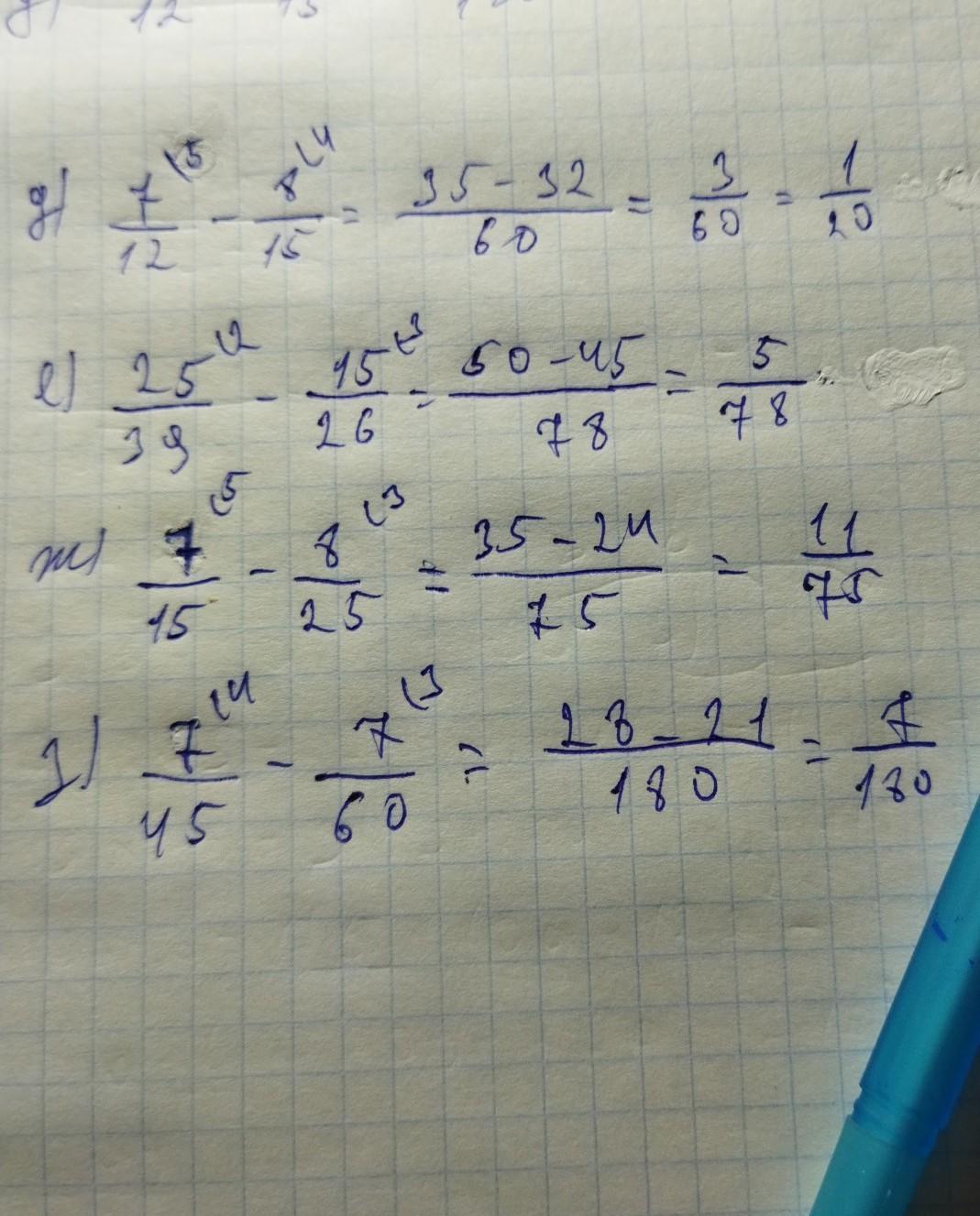 д) 1/20 е)5/78 ж)9/75 з)7/180. Можешь перепроверить в Интернете или на калькуляторе дробей
