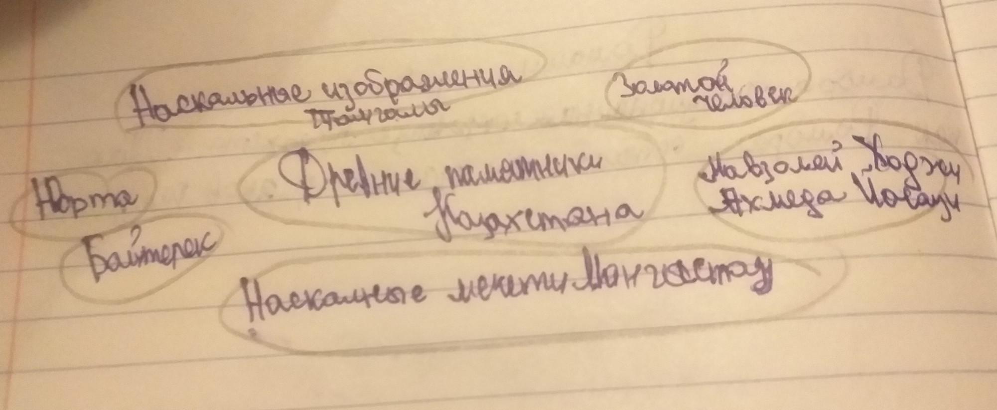 ус 1 Составьте кластер на тему «Древние памятники Казахстана». 2. Выберите одну из тем проекта «Семь чудес Казахстана». Подготовь- те проект и защитите его в форме презентации. 1. «Наскальные изображения Тамгалы». 2. «Золотой человек». 3. «Домбра ». 4. «Юрта». 5. «Мавзолей Ходжи Ахмеда Йасауи». 6. «Наскальные мечети Мангыстау». 7. «Байтерек символ Астаны». Используйте сайт http://www/spring/kz. Категория сайта: История. 8. Составьте синквейн к слову памятник,