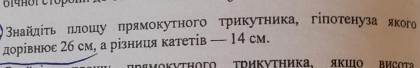Находим катеты: один равен 10 см, второй 10 + 14 = 24 см.