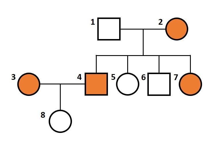 На фотографии родословная семьи. То, что закрашено оранжевым - некое заболевание. Аллель, обеспечивающий развитие этого заболевания: