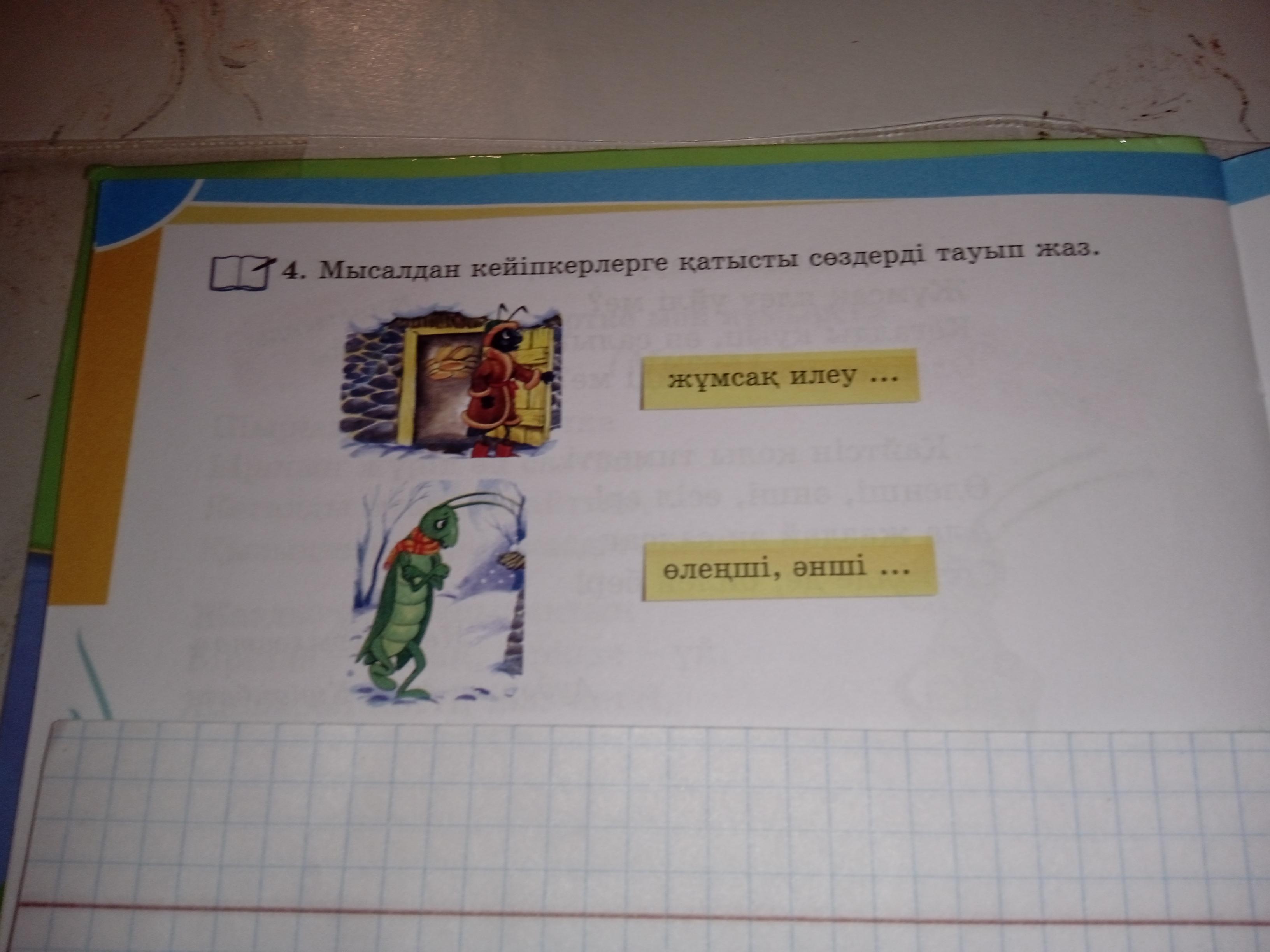 4. Мысалдан кейіпкерлерге катысты создерді тауып жажумсак илеу ...олецш, оиш ... Тез