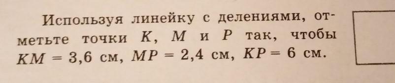 26 Используя линейку сделениями, от- метьте точки K, мир так, чтобы КМ = 3,6 см, MP 2,4 см, КР 6 см.