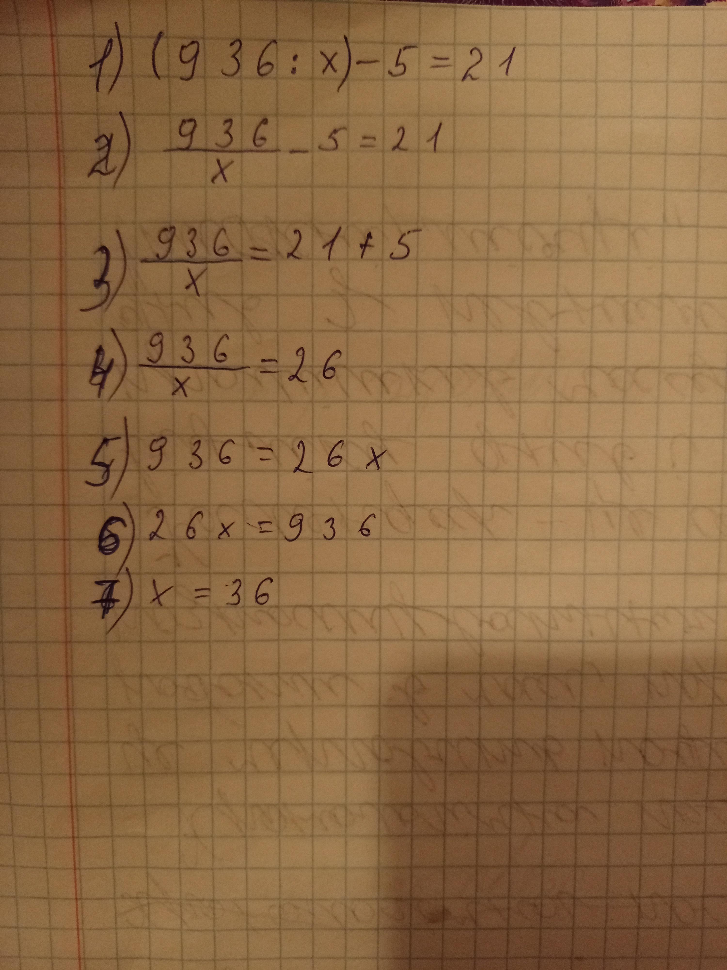 (936:х) = 21+5 (переносим 5 с противоположным знаком)