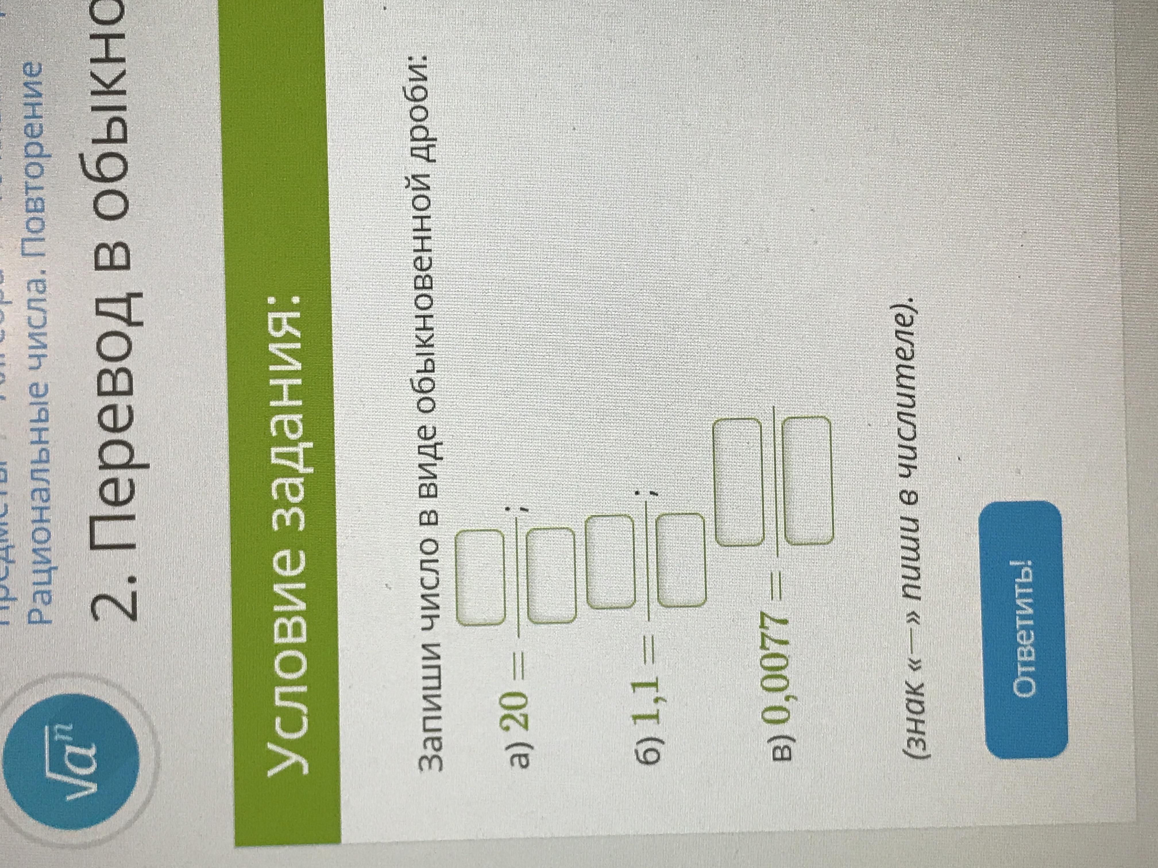 ПОМОГИТЕ ПРОШУ НИЧЕГО НЕ ПОНИМАЮ Запишите число в виде обыкновенной дроби