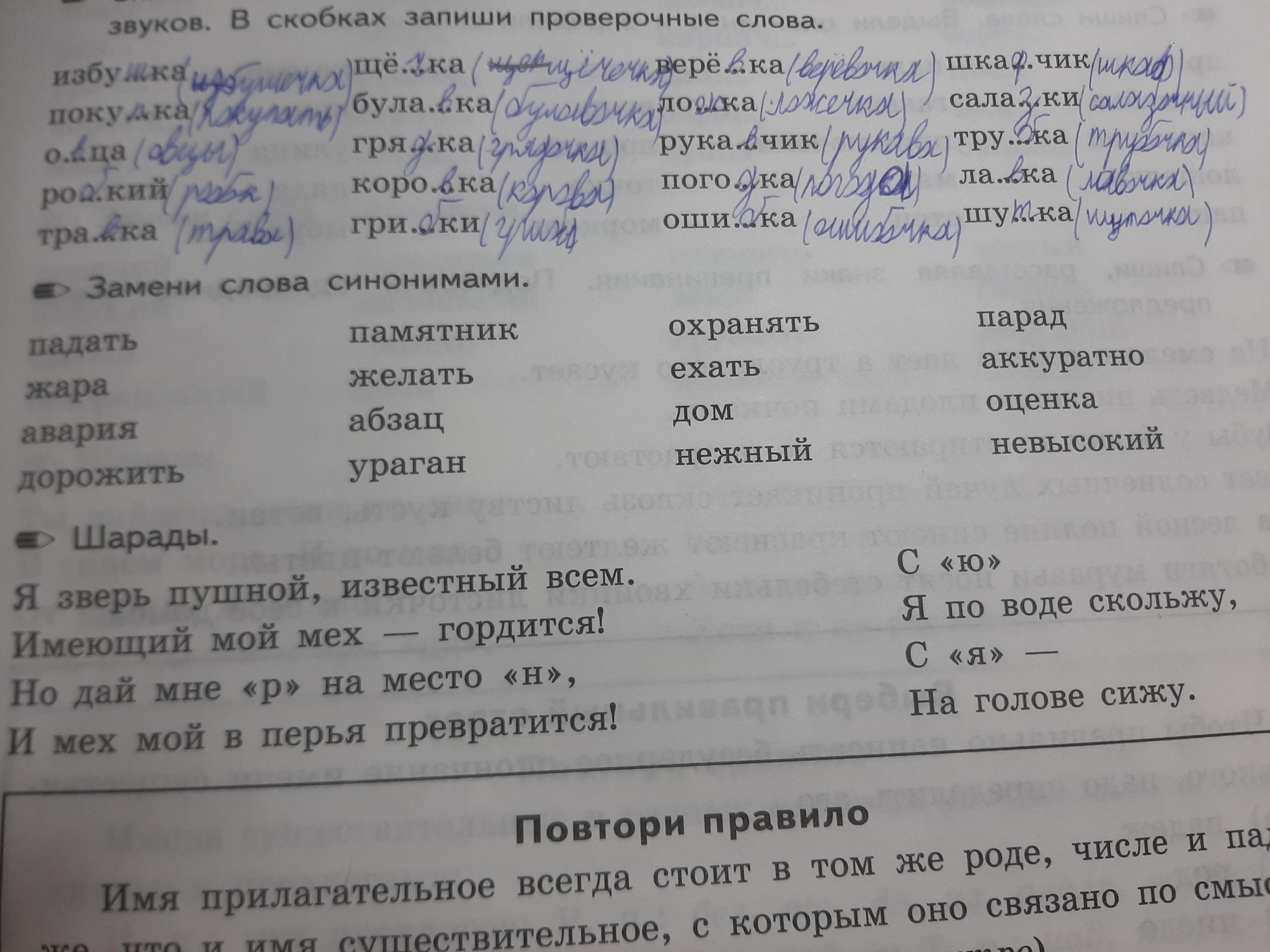 Замени слова синонимами.
