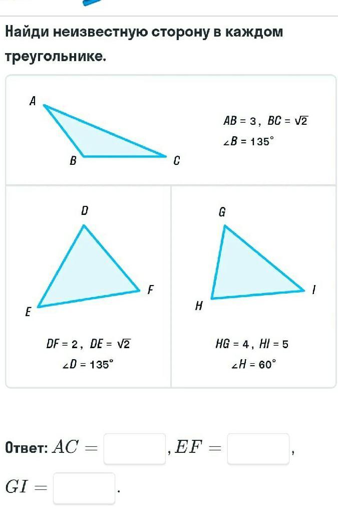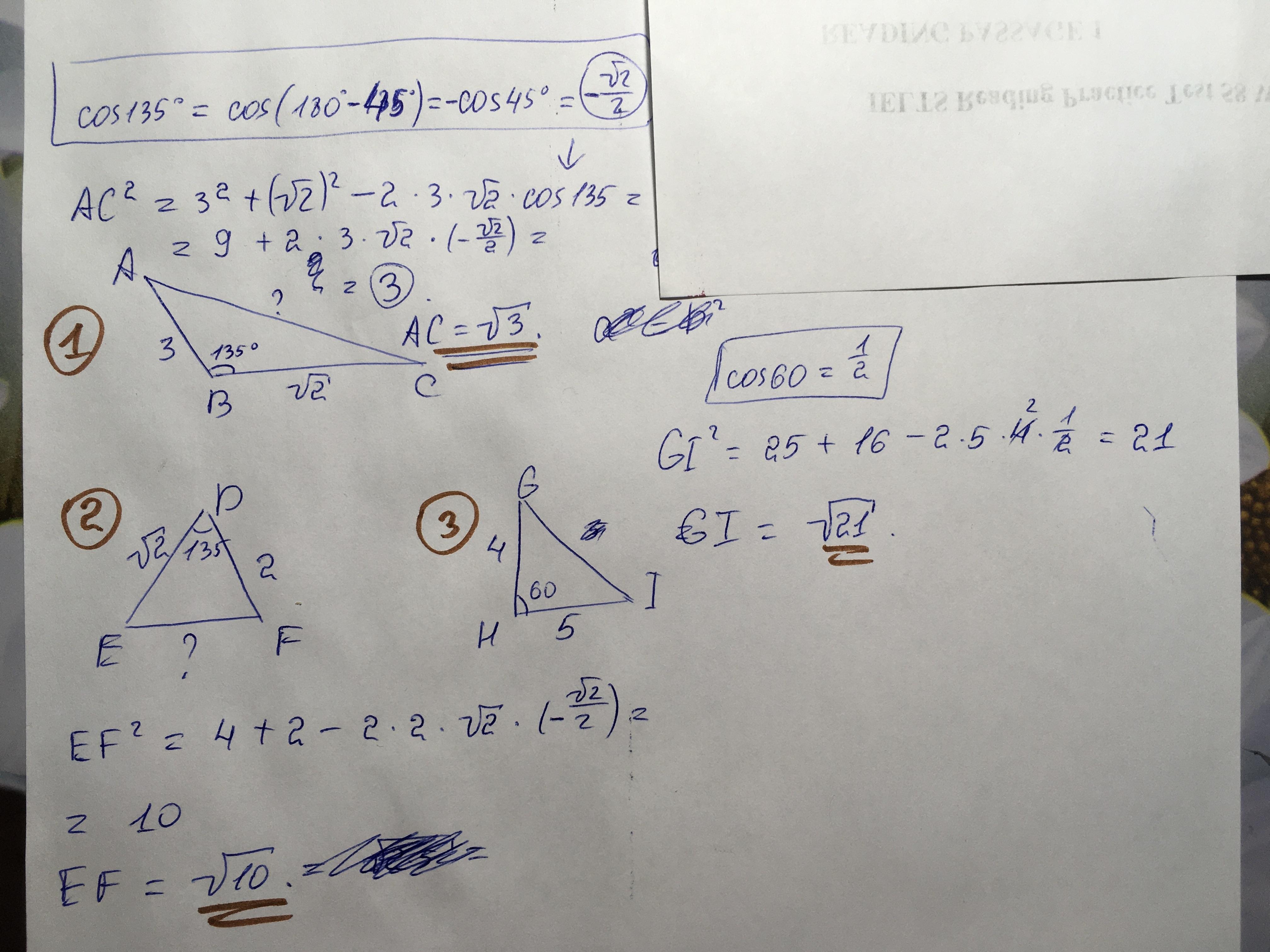 Здесь везде работает теорема косинусов, просто подставь цифры под формулу)