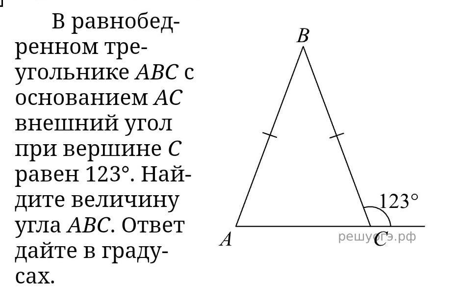 т. к. треугольник ABC равнобедренный, то углы при основании равны (угол BAC=BCA=57°)